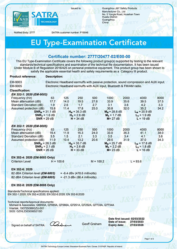شهادة CE لواقيات الأذن الإلكترونية EM-9003 وEM-9005