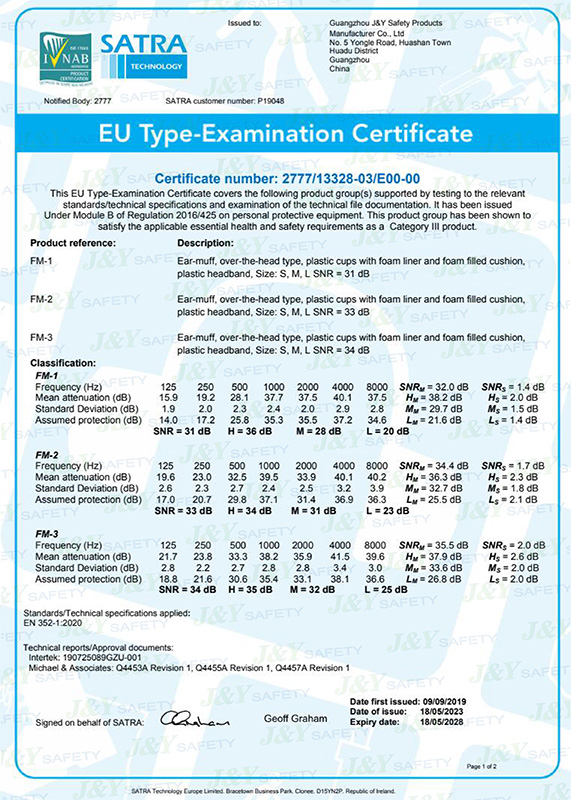 شهادة CE لواقيات الأذن FM-1 وFM-2 وFM-3