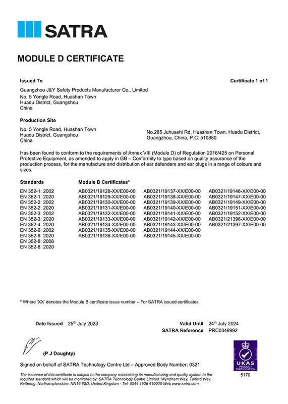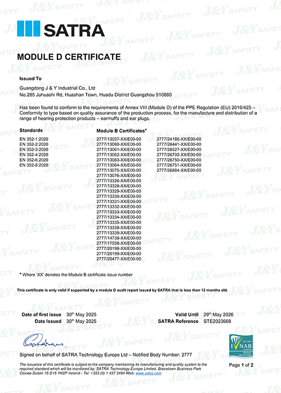 شهادة CE لواقيات الأذن EM-5002 وEM-5002D-1