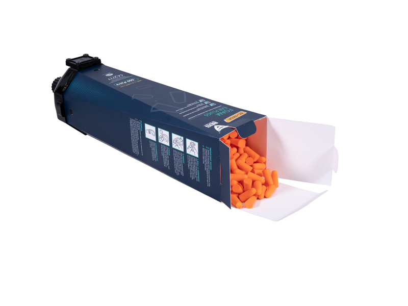 With the Ear Plug بفضل موزع سدادات الأذن، يمكنك وضع سدادات الأذن في كل الأماكن التي تحتاجها بسهولة. تتوفر الموزعات بسعة 250 و500 زوج لكل موزع، وتعزز الموزعات الالتزام باستخدام سدادات الأذن بفضل تصميمها عالي الوضوح والظهور.