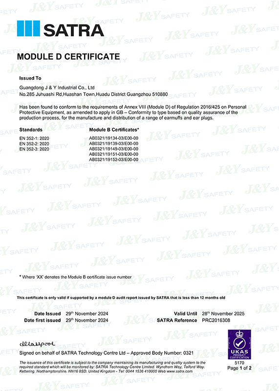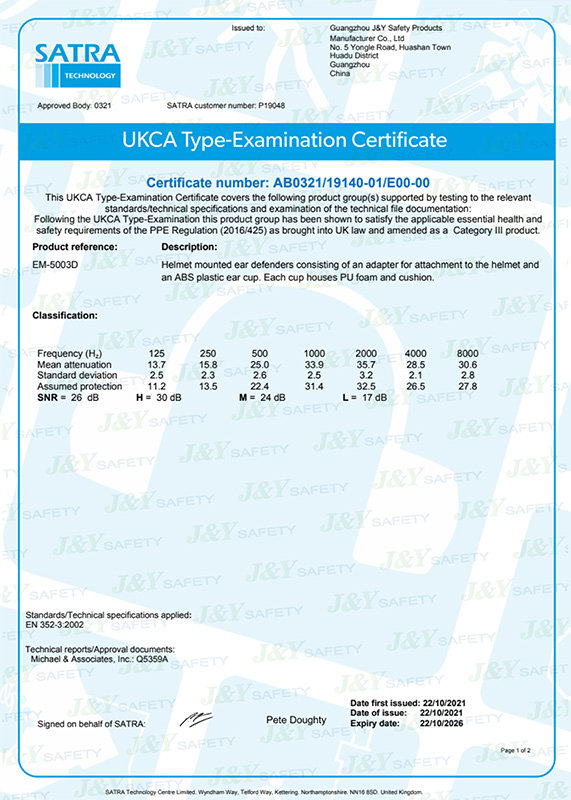 شهادة CE لواقيات الأذن EM-5002 وEM-5002D-1