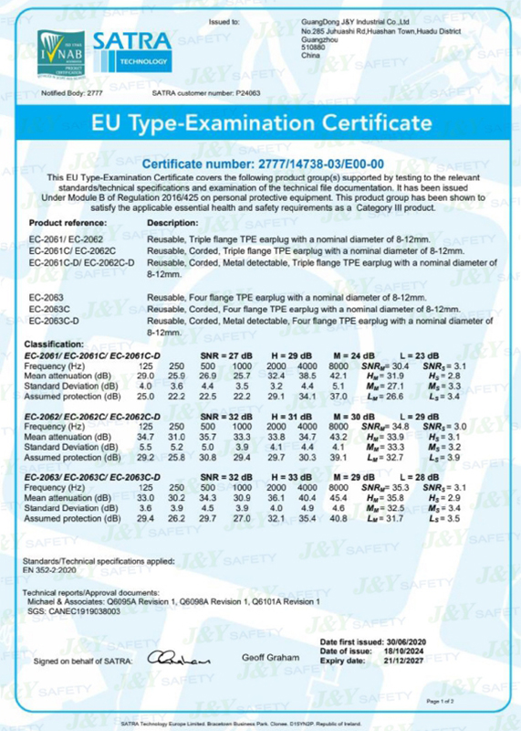 شهادة CE لسدادات الأذن المصنوعة من رغوة البولي يوريثان (PU)